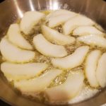 6. Finally turn the pears once more so that the unbrowned side is facing down.